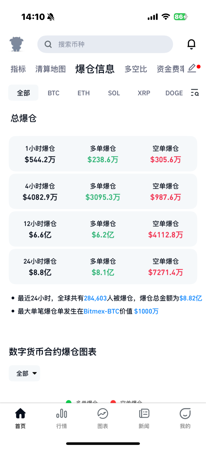 加密货币的突然暴跌,也导致多人血本无归。据Coinglass统计,近24小时内,加密货币有超28.4万人爆仓。